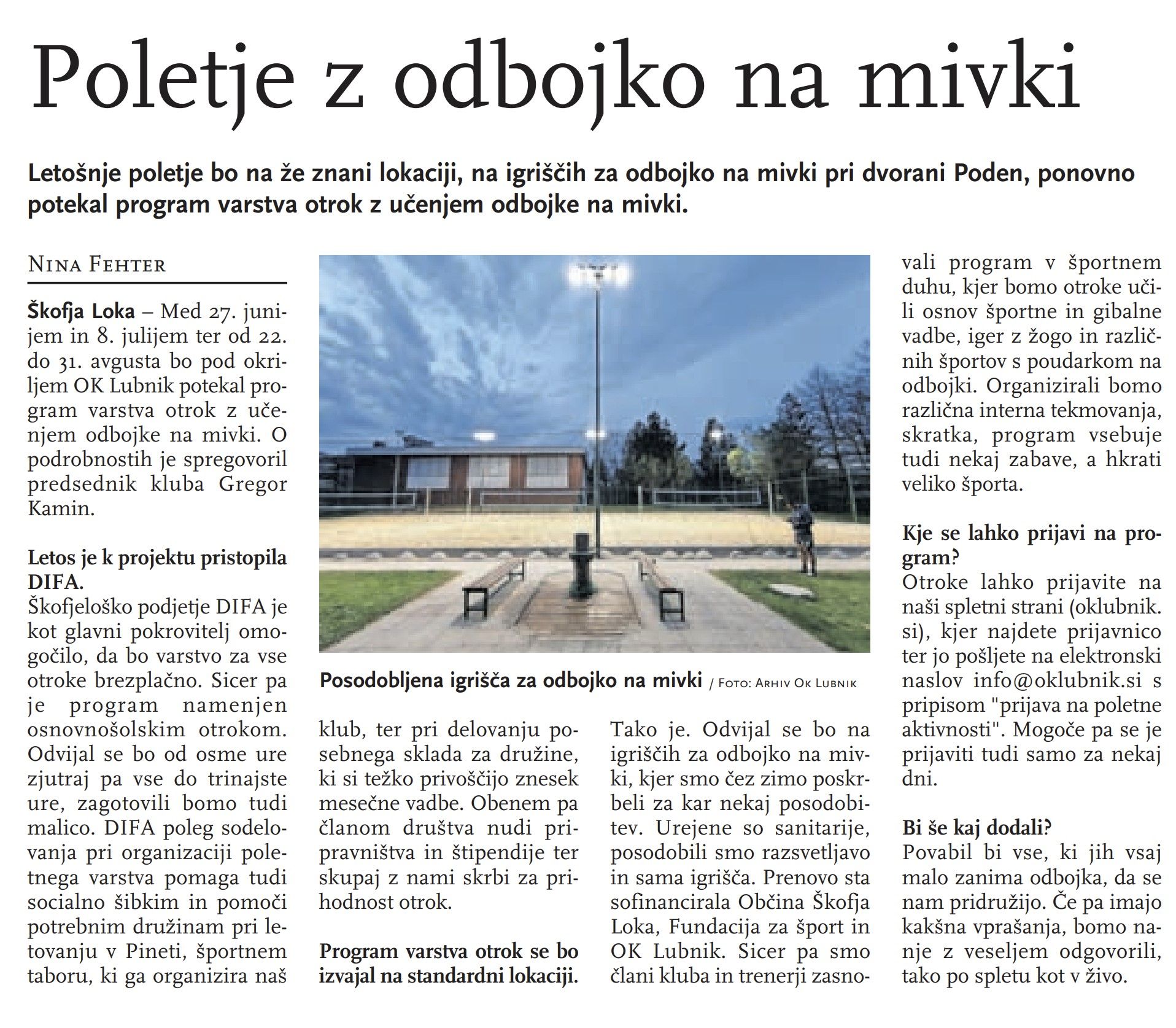 Podjetje Difa kot glavni pokrovitelj omogočilo brezplačno varstvo za vse otroke v programu Poletje z odbojko na mivki.